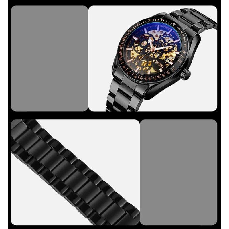 • 1 x 9194 Men Automatic Skeleton Mechanical Steel Band Watch Golden Gold Face