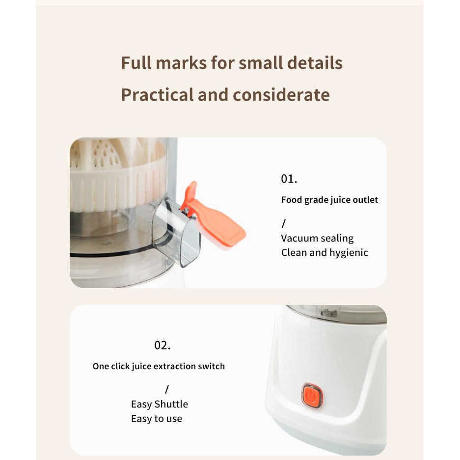 • Food-Grade & Hygienic: Features a food-grade juice outlet with a convenient vacuum sealing cap to keep it clean and prevent drips.