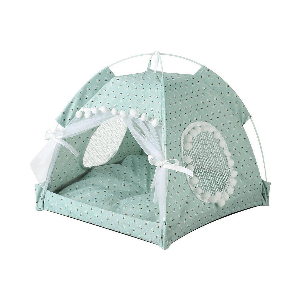 Green floral Portable Folding Pet Tent - Summer Cat & Dog Shelter with Mesh Window, Lightweight and Breathable, Ideal for Travel & Home Use 35x35x30CM