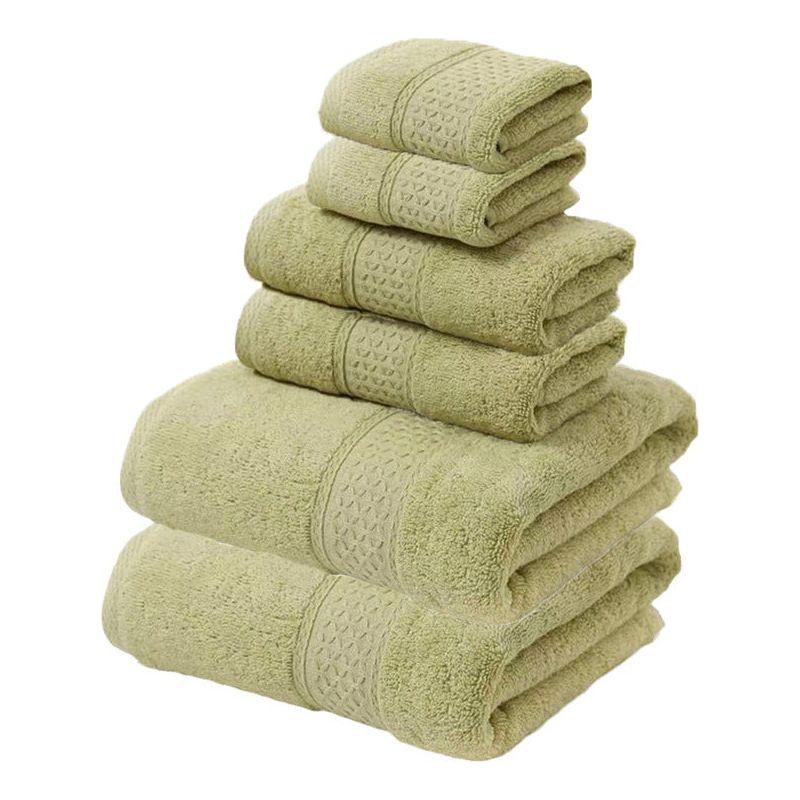Green Luxury 6-Piece 100% Cotton Towel Set - 2 Bath Towels, 2 Hand Towels, 2 Face Towels