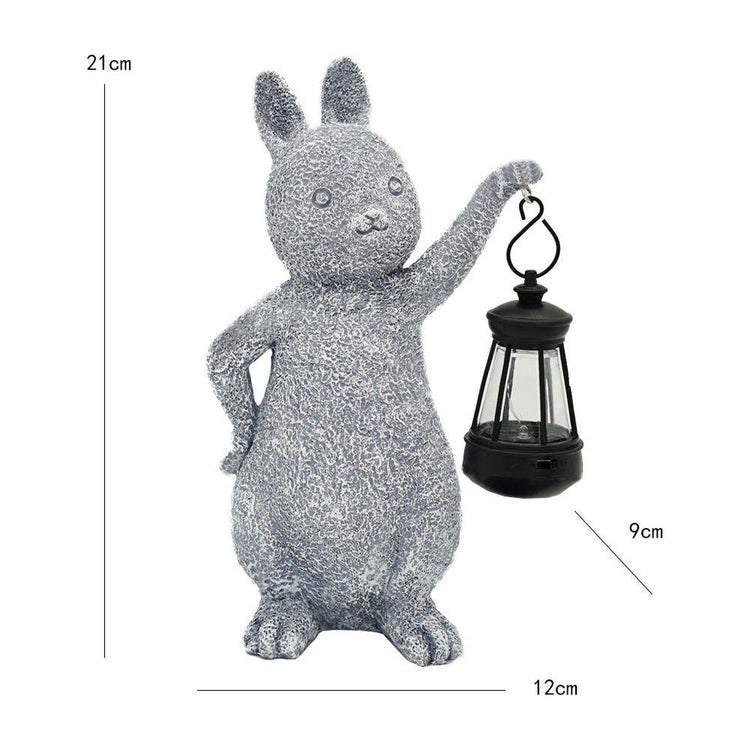 Solar-Powered Rabbit Statue with LED Lantern - Cute Garden & Lawn Decoration
