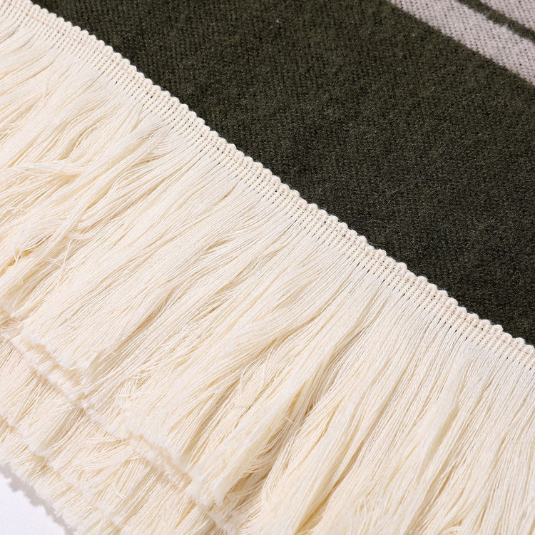 - Chic Fringe Detail: Edged with tassel fringe, adding texture and movement to the garment.