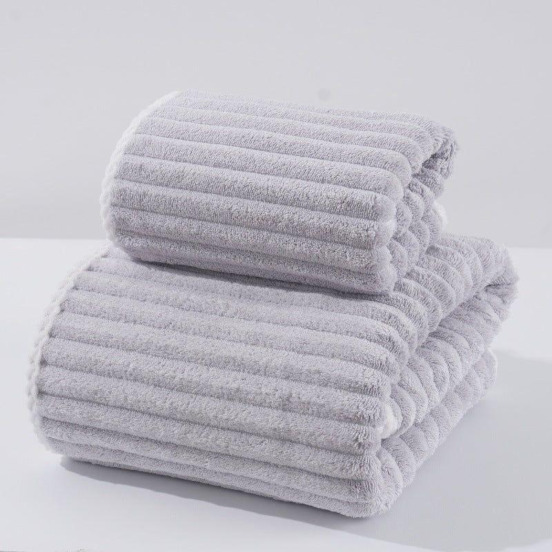 Grey Soft Candy Stripe Coral Fleece Bath Towel and Washcloth Set, Ultra Absorbent, Skin-Friendly