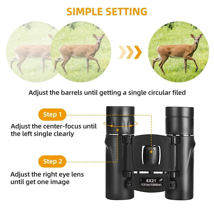 High-power Mini Binoculars for Low-light Night Vision 8x21