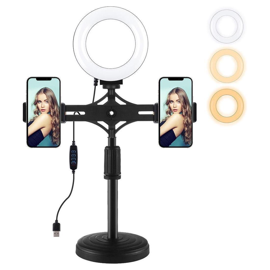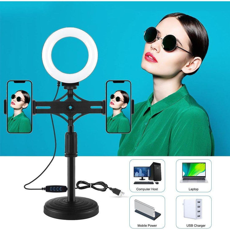 • 1 x 4.7 Inch 12Cm Ring Light Horizontal Dual Phone Brackets Desktop Holder Video Light Kits
