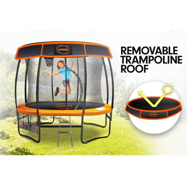 Please Note: Basketball Set feature cannot be used while the roof is on the trampoline. This roof is not suitable for Kahuna Twister and Blizzard models.