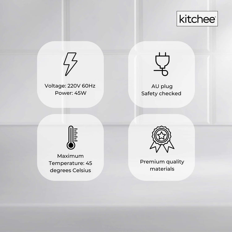 • Voltage: 220V 60Hz with a standard Australian plug.