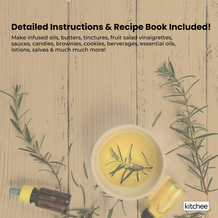 The Kitchee Electric Butter Oil Herbal Infuser Extractor + Decarboxylator Machine simplifies creating herbal-infused butters, oils, and tinctures. Ideal for home herbalists, it features precise temperature control and preset functions for customised results. Just add ingredients, select a function, and press start. The built-in decarboxylation boosts herb potency, while the automated cleaning cycle ensures easy maintenance. Create high-quality infusions effortlessly at home with our recipes included in the manual!