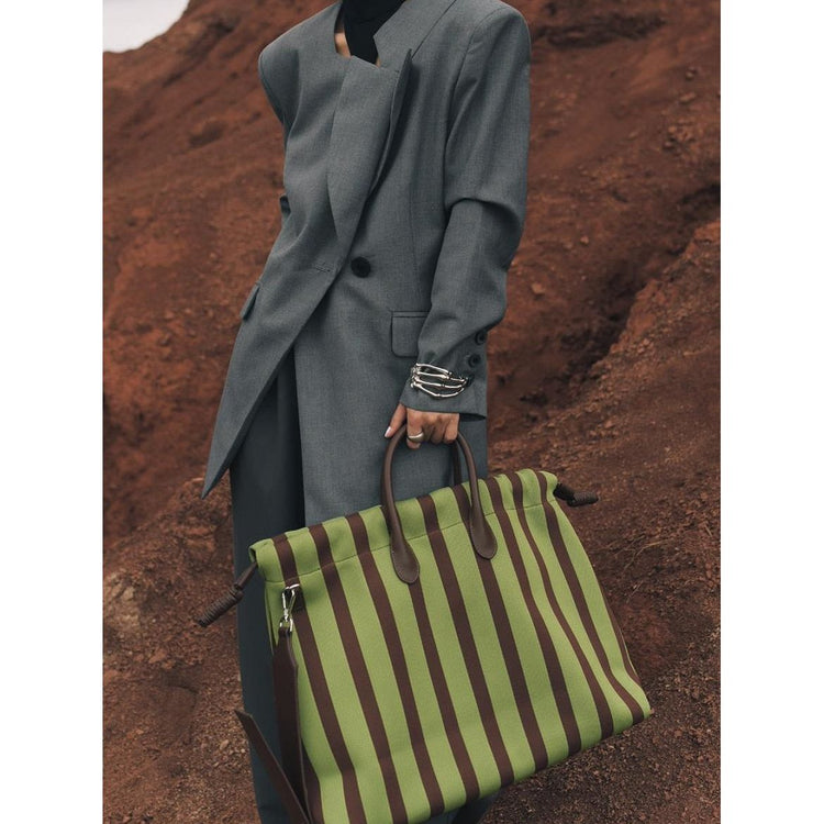 Elevate your everyday style and carry all your essentials with ease in our Large Capacity Striped Canvas Tote Bag. This beautifully crafted tote combines chic striped canvas with smooth leather trims. Perfect for commuting, travel, or as your go-to daily carryall.
