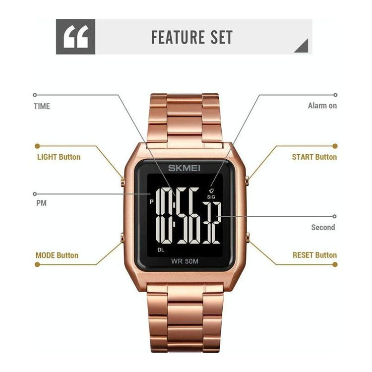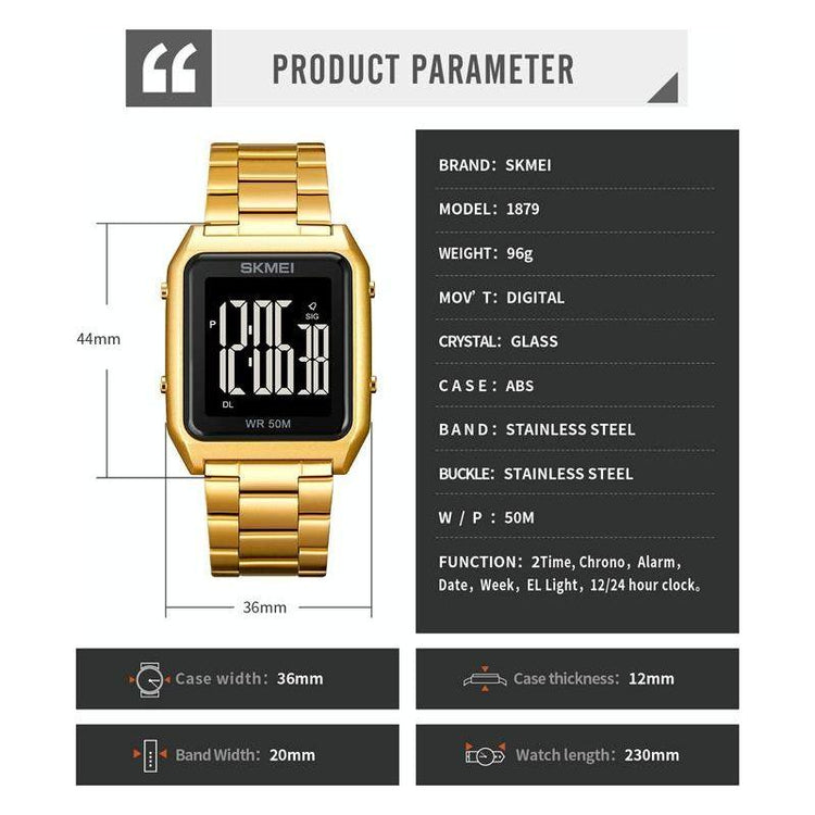 • 1 x 1879 Square Large Screen Men Steel Belt Multi-Function El Luminous Watch