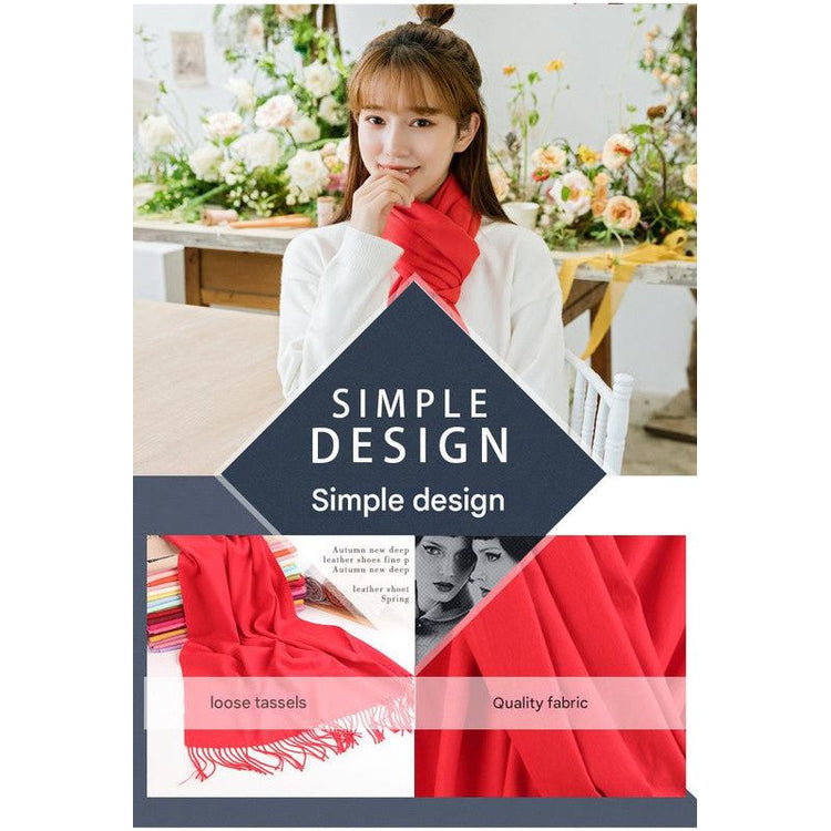 Luxe Soft Imitation Cashmere Scarf - Warm Solid Tone Shawl with Elegant Fringe