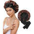 Luxury Double-Sided Satin Bonnet with Elastic Band(Black + brown lining)