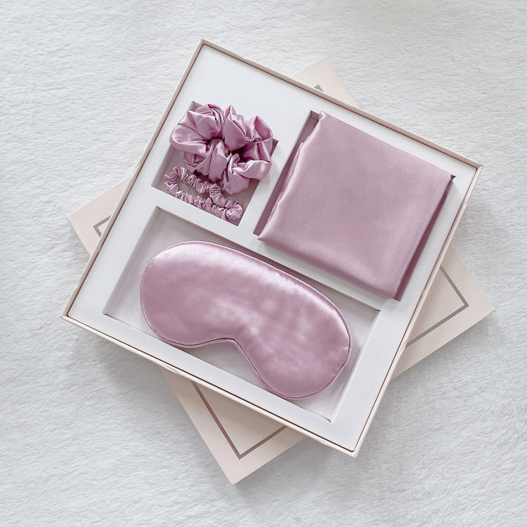 • Set Includes: Sleep mask, pillowcase, large scrunchie, and thin hair tie