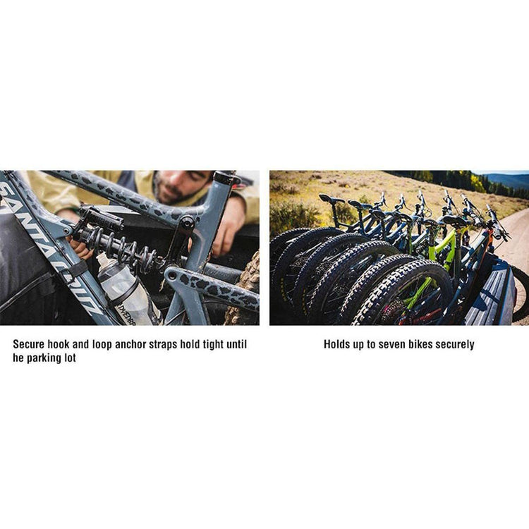 This Large fits full sized trucks and can haul up to seven. Regardless of size, the pads include secure bike anchors to keep your machines in place.