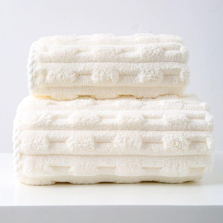 Off White Thickened Coral Fleece Towel Set, Large Bath Towel & Face Towel Combo, Soft & Absorbent Towels for Home Use
