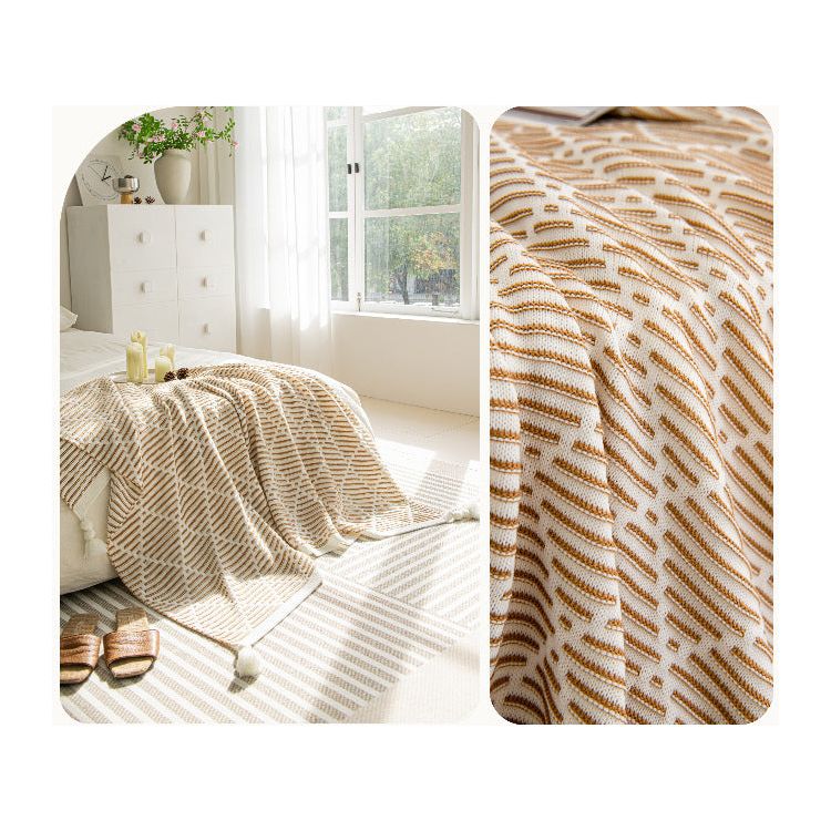 Drape yourself in comfort or add a stylish accent to your living space with this beautifully designed Knit Throw Blanket. Featuring a modern geometric pattern and charming tassels, this versatile blanket is perfect for snuggling on the sofa, adding an extra layer of warmth to your bed, or keeping cozy in the office.