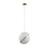 The Padgett light series offers an almost surrealist vibe, using a split, off-center design that utilizes a matte white spherical light cover that filters light 360° around the orb and features elegant golden accents through the centre split and the base or ceiling mount.