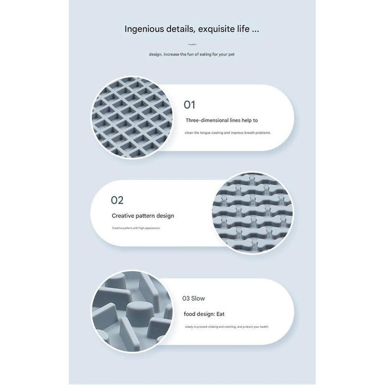 Made from food-grade silicone, this mat is safe for your pet and easy to clean. Its flexible design allows for convenient storage, and the durable material withstands regular use. Perfect for dogs of all sizes, this slow feeder mat supports healthy eating habits while providing mental stimulation, making it an excellent addition to your pet's routine.