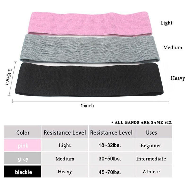 - 3 x Fabric Resistance Bands (Light, Medium, Heavy)