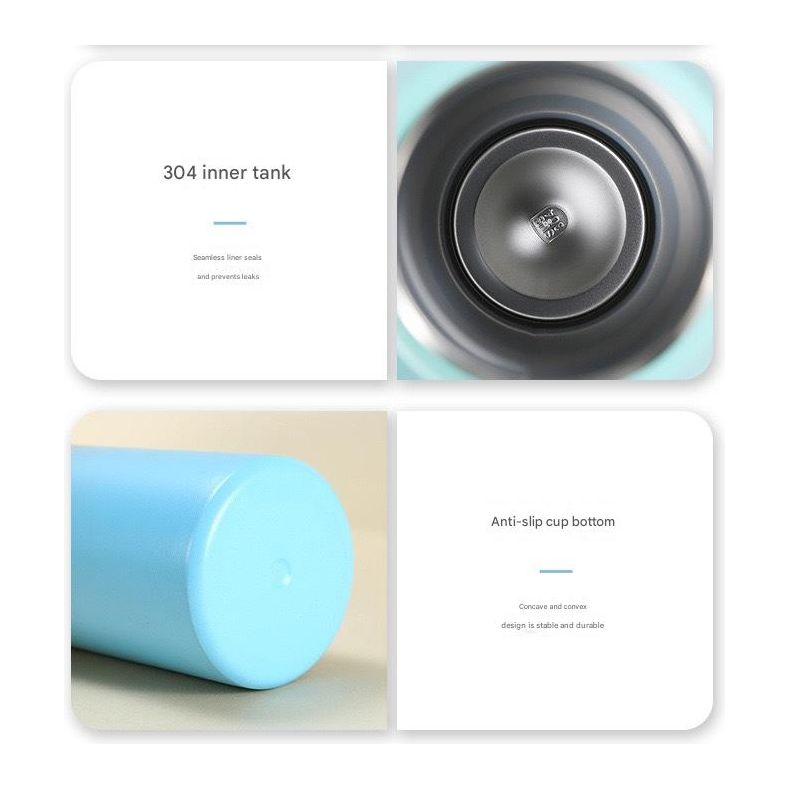 • Premium 304 Stainless Steel: The inner wall is made from food-grade 304 stainless steel, ensuring durability, rust resistance, and no metallic taste transfer. BPA-free for safe hydration.
