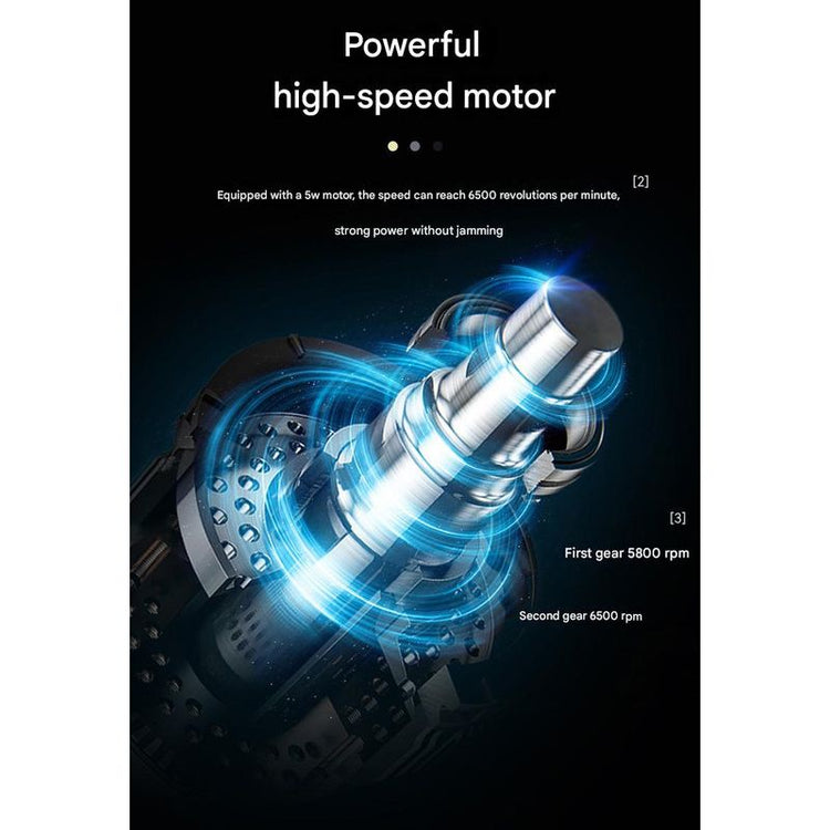• Powerful High-Speed Motor: Equipped with a 5W motor offering two speed settings (5800 RPM and 6500 RPM) for efficient, non-snagging performance.