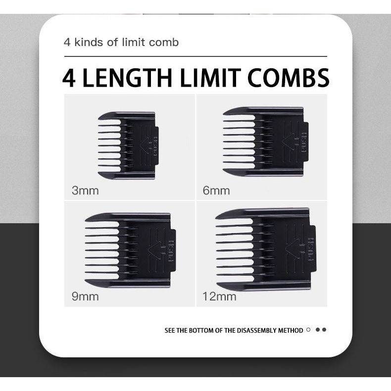• Four Length Limit Combs: Includes 3mm, 6mm, 9mm, and 12mm guide combs for easy custom length trimming.