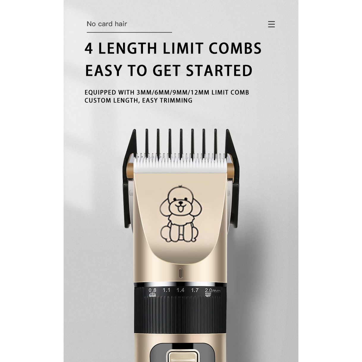 • Complete Grooming Kit: Includes the pet hair clipper, 4 x limit combs, cleaning brush, lubricating oil, and charging cable (charger not typically included, uses standard USB).