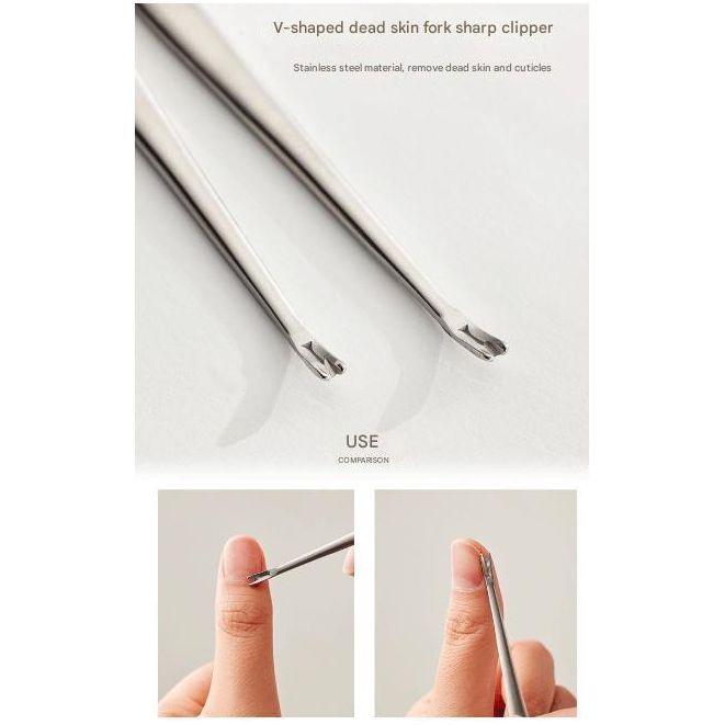 - Complete 7-in-1 Kit: This versatile set includes: sharp nail scissors, a flat-edge nail clipper, a slanted-edge nail clipper, a smooth nano glass nail file, a convenient ear pick, a dual-purpose cuticle pusher/fork, and precision tweezers.