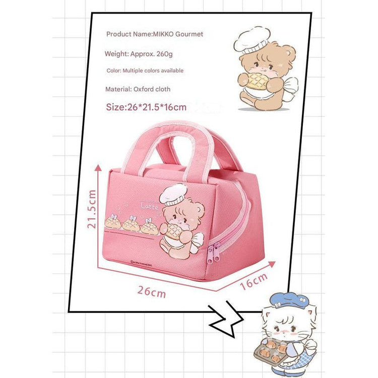 Keep your meals fresh and stylish with the Cute Cartoon Lunch Bag. Featuring an adorable bear and cat design with a baking theme, this lunch bag is perfect for students, office workers, or anyone on the go. Made from durable oxford cloth, it is lightweight at approximately 260g and offers a spacious interior to hold 3 to 4 lunch containers, drinks, and utensils. The insulated lining ensures your food stays at the right temperature, making it ideal for lunches, picnics, or snacks.