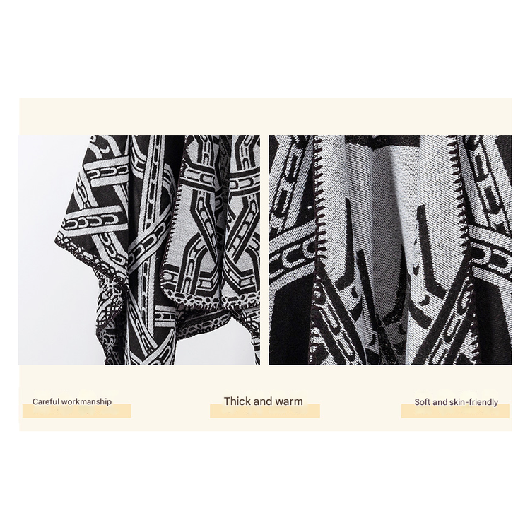 Embrace comfort and unique style with this versatile blanket poncho. Inspired by grassland ethnic aesthetics, this oversized shawl is designed to provide warmth and protection from the wind, making it a perfect companion for cooler weather, outdoor events, or cozy evenings indoors.