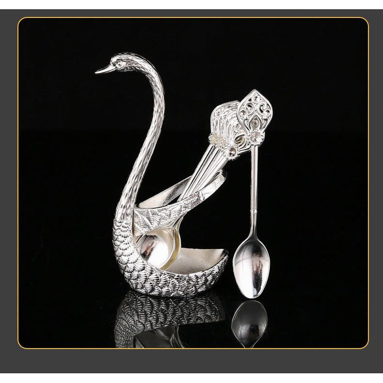 - Complete Set: Includes one decorative swan holder and 6 matching small utensils (typically dessert spoons).
