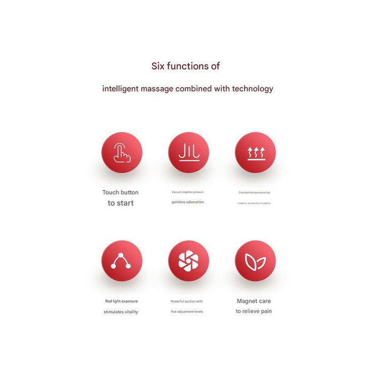 • Versatile Therapeutic Benefits: Combines cupping, Gua Sha, red light therapy, heat therapy, and magnetic therapy.