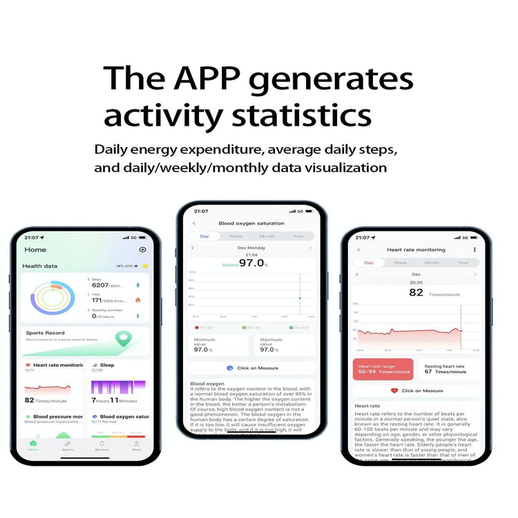• Monitors heart rate, blood oxygen levels, and sleep patterns