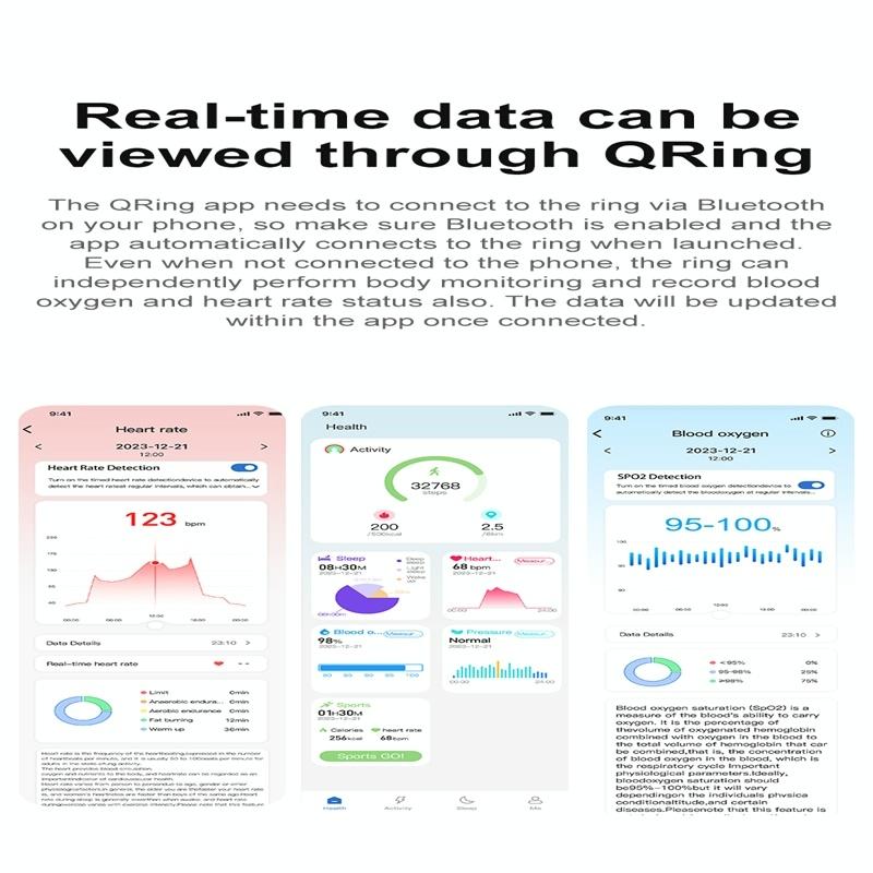• 1 x R02 Size 9 Smart Ring Supports Heart Rate / Blood Oxygen / Sleep Monitoring / Multiple Sports Modes