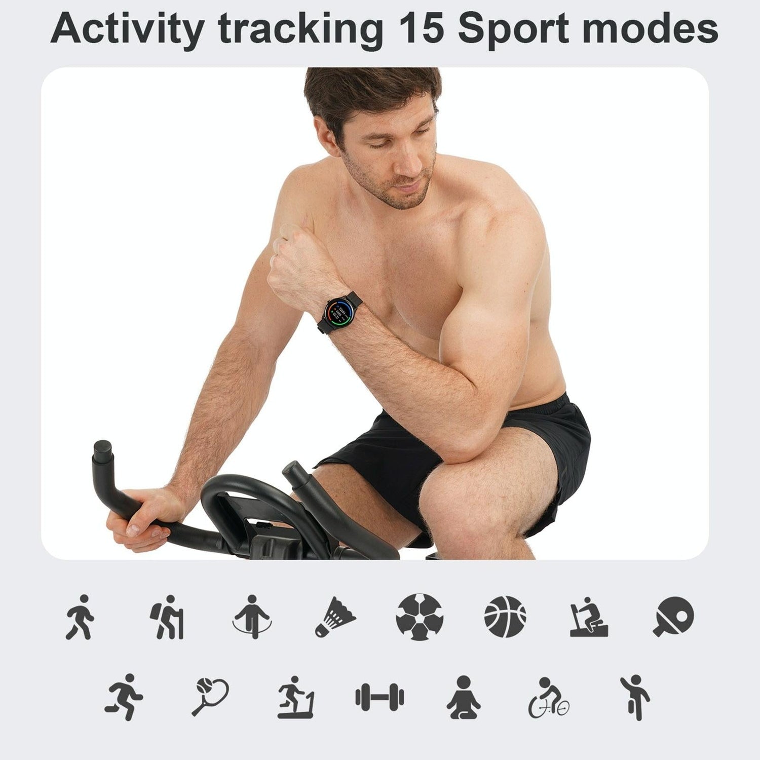 • Multiple functions including step counting, calorie tracking, distance measurement, stopwatch, countdown, heart rate monitoring, blood pressure monitoring, blood oxygen monitoring, sleep monitoring, and more