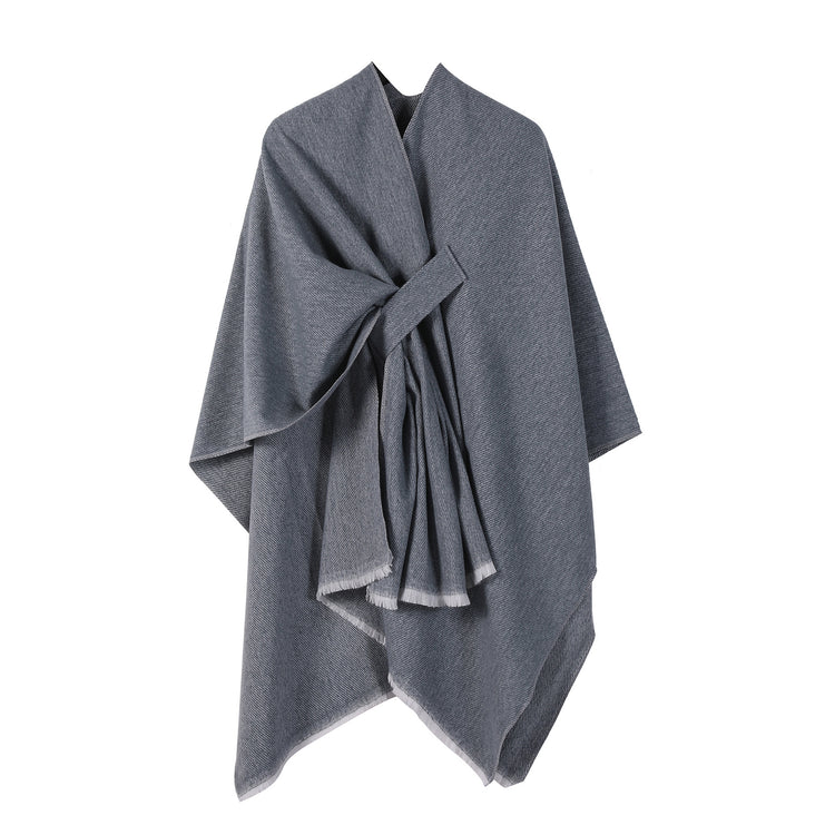 Solid Knit Poncho Shawl,Warm Fall/Winter Cape with Slit and Crossbar Design(Dark gray)