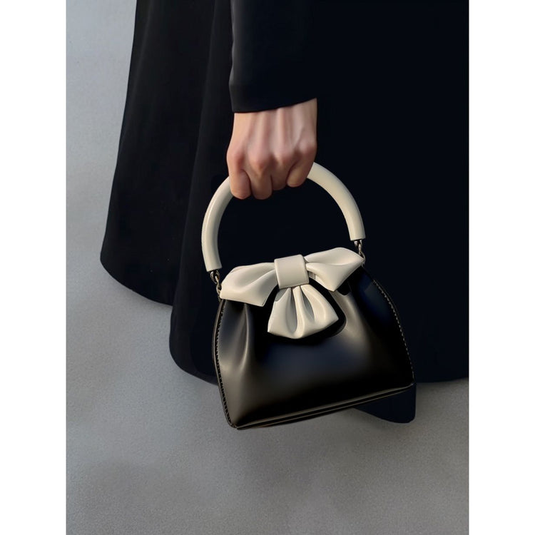 Elegant Black & White Bow Top Handle Handbag