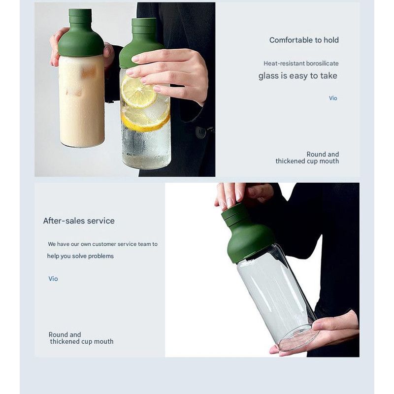 - Premium High Borosilicate Glass: Crafted from durable, heat-resistant (though primarily for cold drinks) high borosilicate glass, this bottle is designed for clarity and longevity. It won��t stain or retain odors/flavors, ensuring your drinks taste pure. The round and thickened cup mouth offers a comfortable drinking experience.