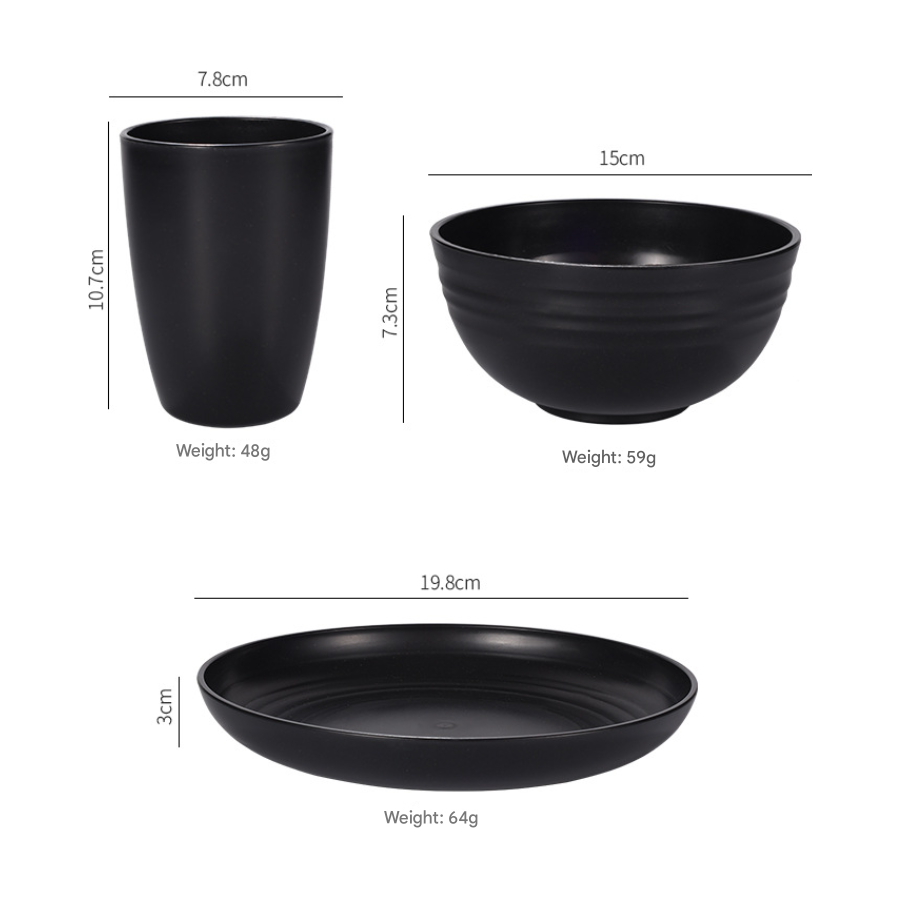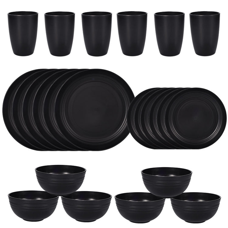 Upgrade your tableware collection with this sleek and sustainable 24-piece dinnerware set in a sophisticated finish. Made from a durable wheat straw composite, this lightweight and break-resistant set is perfect for everyday meals, entertaining, picnics, camping, or as a stylish gift.
