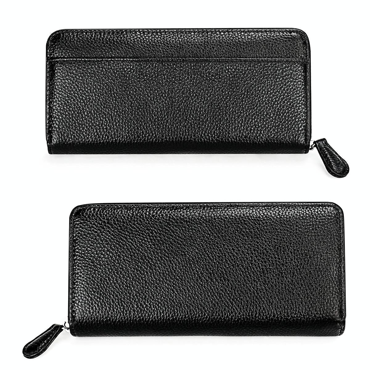 Stylish Rfid Clutch with Zipper - Lychee Texture - Black