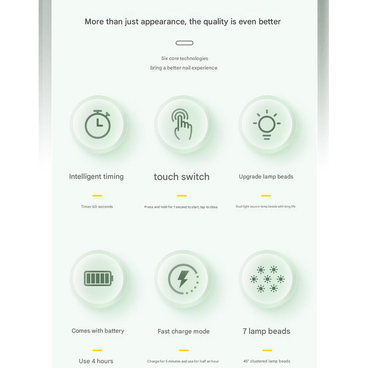 • Intelligent 60s Timer: Automatic 60-second timed curing cycle for convenience.