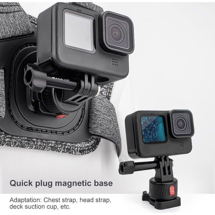 • Quick release: Mount your camera for camera in an instant. For example, on a tripod, helmet, handle, chest mount or selfie stick. Within one second you have the camera on or off