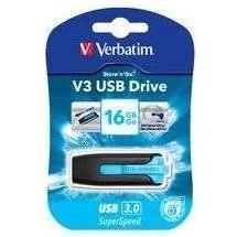 Featuring a USB 3.0 interface for SuperSpeed data transfer, the Store \'n\' Go V3 USB Drive is up to 10 times faster than USB 2.0* making it faster for transferring and saving larger file sizes of all types. The design of the V3 USB Drive also ensures that the USB connectors are protected featuring a \'slide and lock\' mechanism. This locks into position when using the drive and retracts back into a closed position to protect the connector when not in use. Simple and easy to use, just plug into any USB 3.0 port (also compatible with USB 2.0) and drag and drop your folders and files. Available in a range of vibrant colours in 16GB capacity: Caribbean Blue, Eucalyptus Green, and Hot Pink. * Based on USB 3.0 theoretical bus speed. Actual speeds dependent on file size and computer capabilities. Capacity: 16GB Read Speed: Up to 60MB/sec (USB 3.0 host system) Write Speed: Up to 12MB/Sec (USB 3.0 host system) Product Number: 49176 Features and Benefits: USB 3.0 SuperSpeed Interface. \'Slide and Lock\' mechanism protects the USB connector when not in use. Compact, stylish design. Verbatim 2 Year Limited Warranty.