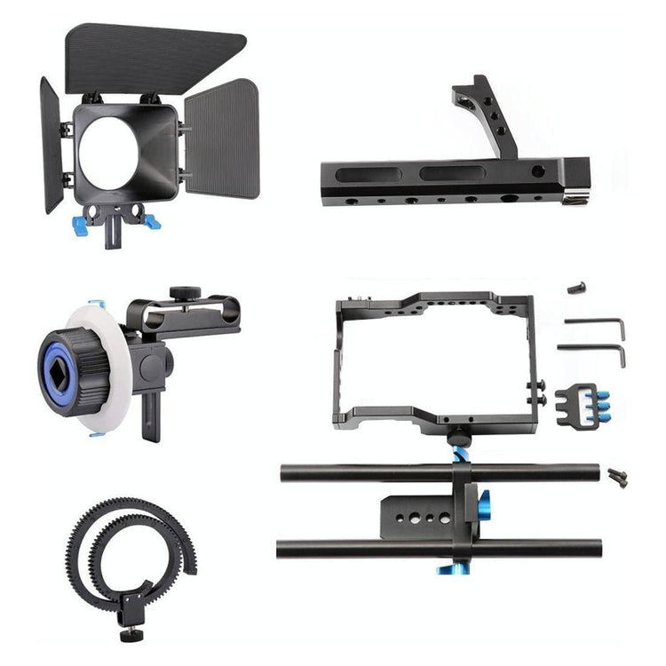 Video Camera Cage Stabilizer Kit With Matte Box & Follow Focus For Panasonic Lumix Dmc-Gh4 & G7 / Sony A7 Series