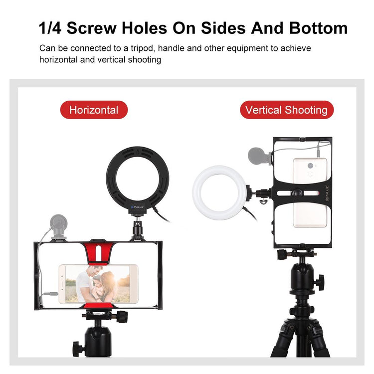 • 1 x 2 In 1 Vlogging Live Broadcast Smartphone Video Rig 4.7 Inch 12Cm Ring Led Selfie Light Kits With Cold Shoe Tripod Head