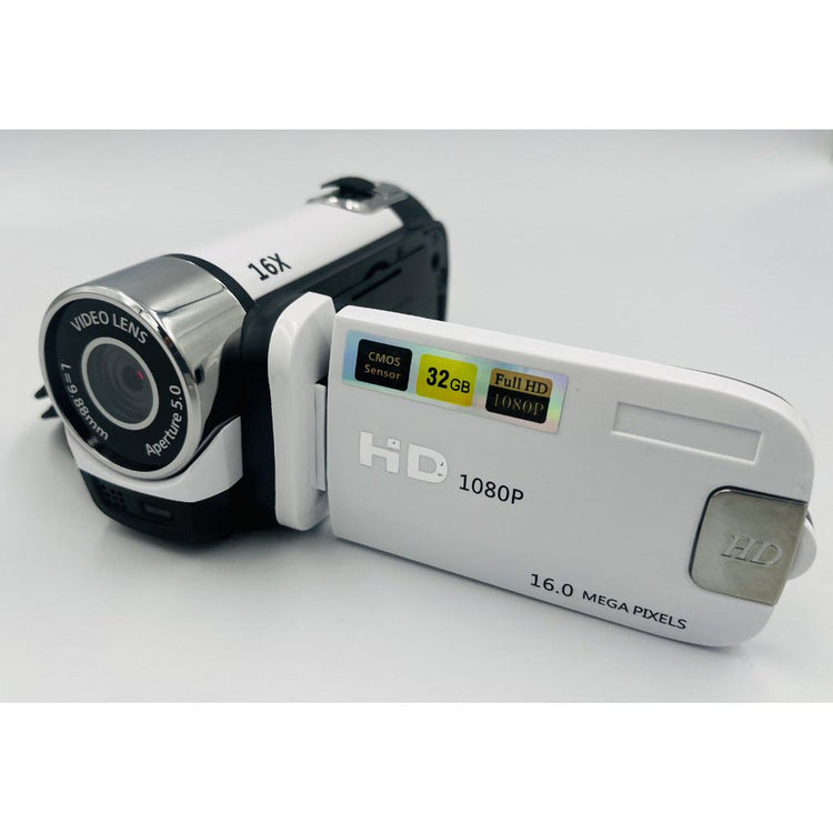White Capture Life's Moments: HD 1080P Digital Camcorder - 16MP Photos, 16X Digital Zoom, 2.7 LCD Screen"
