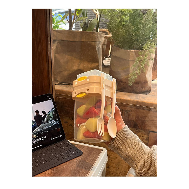 Revolutionize your on-the-go meals with our innovative "Salad in the Box" Portable Meal Cup! This cleverly designed container is perfect for enjoying fresh salads, yogurt parfaits, overnight oats, fruit, nuts, and more, wherever your day takes you. Its smart dual-compartment system keeps your main ingredients separate from toppings or dressings until you're ready to mix and eat, ensuring ultimate freshness and crunch.
