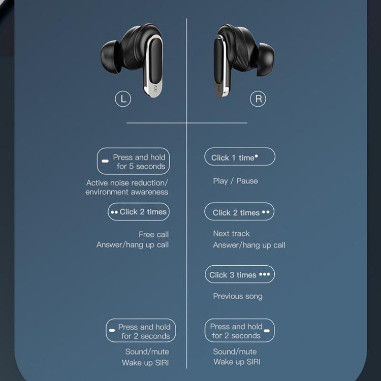 • 1 x Colour Screen Touch Anc Active Noise Reduction Lcd Wireless Bluetooth Earphones