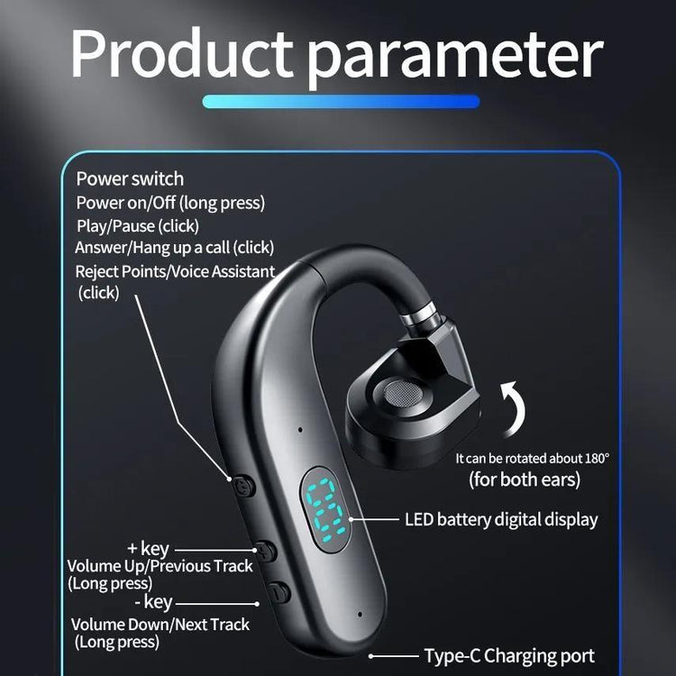 • Rotatable shaft for easy adjustment and can be worn on either ear