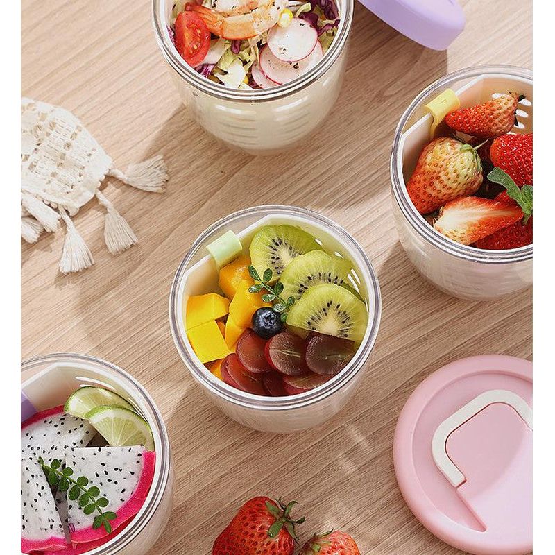 Double-Layer Salad Cup with Fork - Leak-Proof Fruit Container, Draining Design, Portable Oatmeal and Picnic Jar